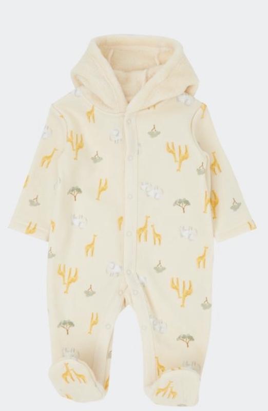 Чарівне доповнення до повсякденних речей вашої дитини, цей фліс All in one має природний принт. Зручні кнопки, що застібаються спереду та на штанинах у поєднанні з м’яким зручним капюшоном.