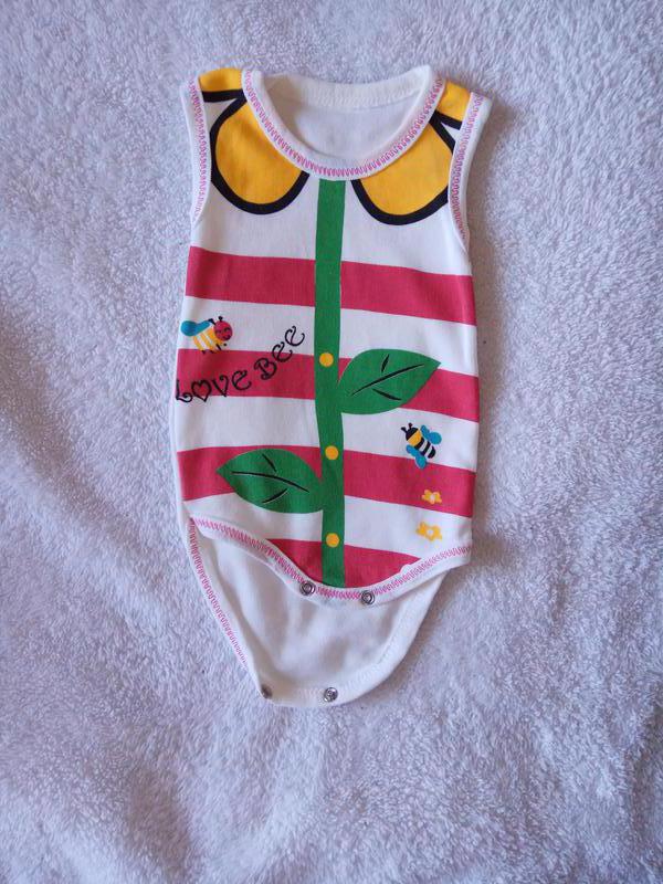 Летняя боди-маечка с цветком и пчелками. Состояние идеальное. Был куплен под конец лета и одет пару раз. Размер 56-62.