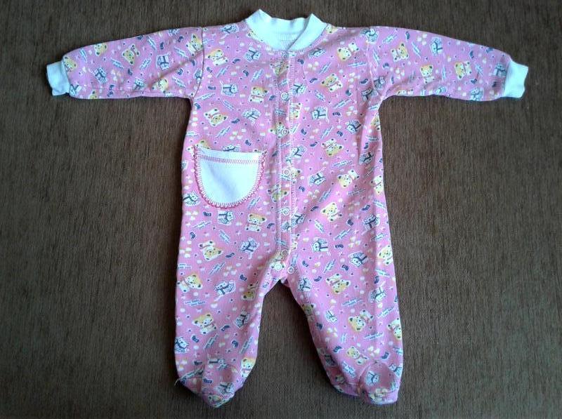 Чоловічок рожевий з кишенею на 3-6 міс Довжина виробу 48 см Довжина крокового шва 14 см Довжина від шиї до крокового шва 34 см Довжина рукава 25 см Довжина по лінії грудей 21 см