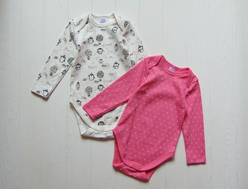 Новий комплект із 2-х яскравих бодиков з довгим рукавом для дівчинки. Внизу застібаються кнопками. Шикарне якість. М'які. C&A. Розмір 9 місяців, зростання вказаний 74 див. Стан: нові, але без паперової бирки. Склад: 100% бавовна. Заміри: довжина 43 см, ПОГ 22 см, рукав від плеча 28 см від горловини 34 см, по внутрішній стороні 20 см, плечі 20 див. Матеріал тягнеться. Ціна комплекту 260 грн. У роздріб один бодік 140 грн.
