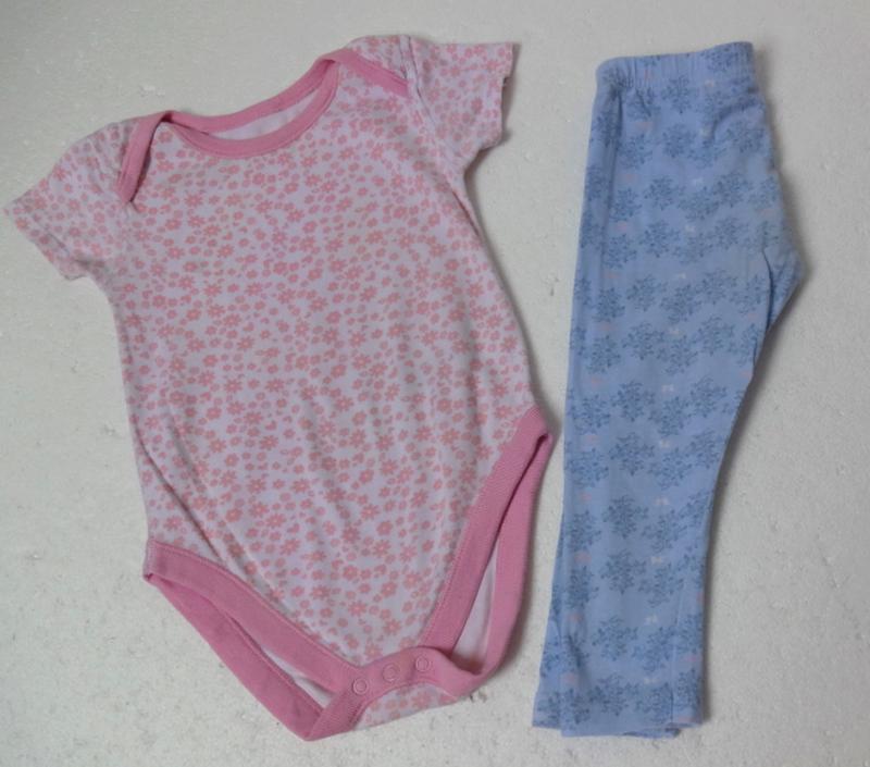 Якісний бодік у відмінному стані. Без нюансів. До нього на додачу піжамні штанці. На коліні є зашита дірочка. В іншому стан хороший, без несподіванок. Довжина бодіка 43 см довжина штанців 43 см