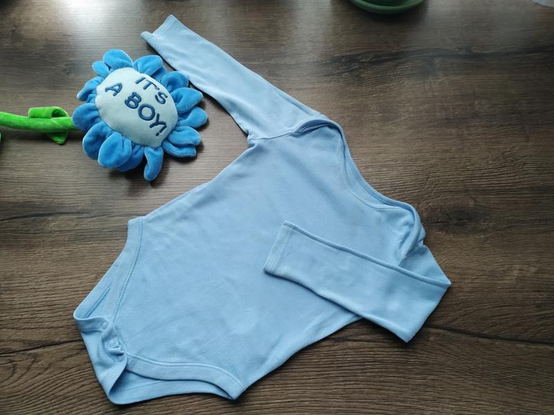 100% котон. Застібка на трьох кнопках на памперсі, на плічках без кнопок, дуже зручно швидко одягнути навіть на сплячу дитину)) Довжина від плічка до памперсі 43 див. Колір блакитний Стан хороший, без дірок, є кілька ледь помітних блідих цяток ( останні фото) Якщо залишилися питання, пишіть, відповім з задоволенням)) Вдалих покупок!