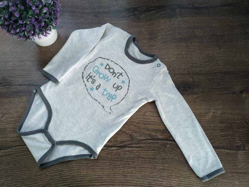 100% котон. Застібка на трьох кнопках на памперсі, на плічках на двох кнопках, дуже зручно швидко одягнути навіть на сплячу дитину)) Розмір на бірці 80 см Довжина від плічка до памперсі 40 див. Колір світло сірий з малюнком. Стан дуже гарний, з нюансів: кілька ледь помітних цяток ( останнє фото). Якщо залишилися питання, пишіть, відповім з задоволенням)) Вдалих покупок!