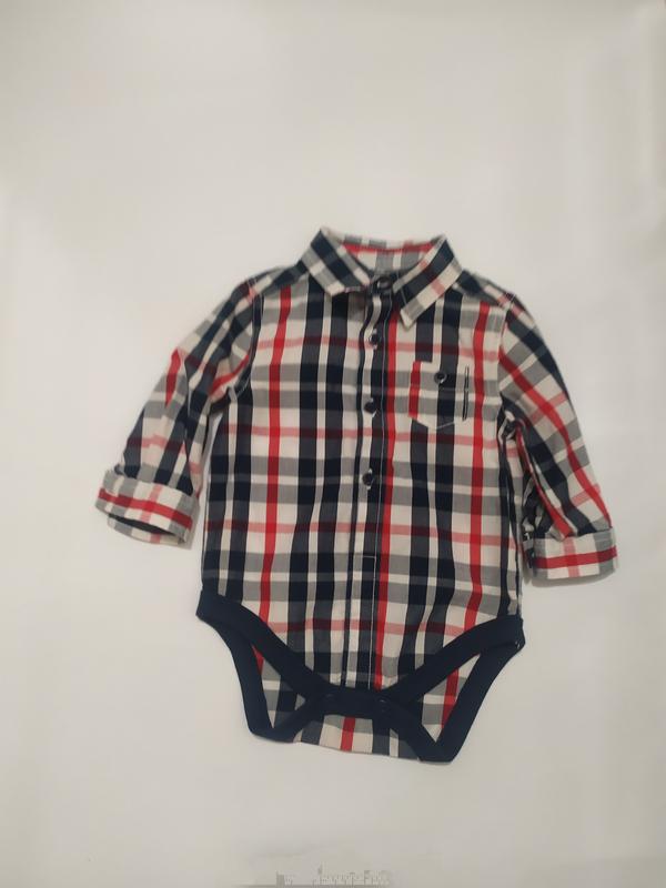 Боді-сорочка у клітинку на довгий рукав. Колір - синій та червоний. Застібка – гудзики. Тканина - 100% бавовна. Розмір в наявності на зріст 68см. Даний товар відправляється з 100% передоплатою в Відправлення щоденно, в день оплати.