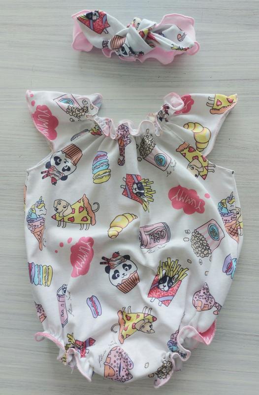 Яскравий літній боді пошитий з якісної і легкої тканини кулір. Пов'язка в тон . Дуже зручний і легкий - незамінний в літні дні. Розмір 62, 68, 74, 80.