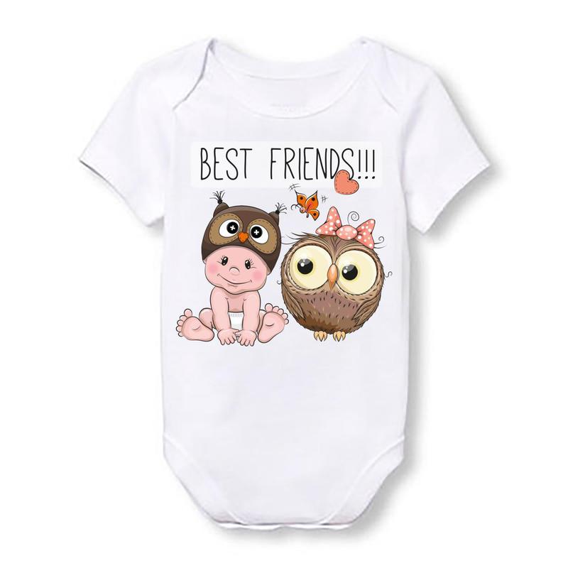 Дитячий боді push it з принтом малюк і совеня "best friends!!!" 62, білий