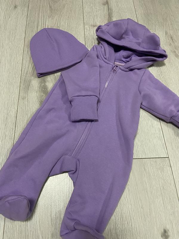 Ромпер лавандового кольору із шапочкою, ніжки закриті Стан ідеальний , один раз одягнутий на фотосесію На флісі Розмір 62