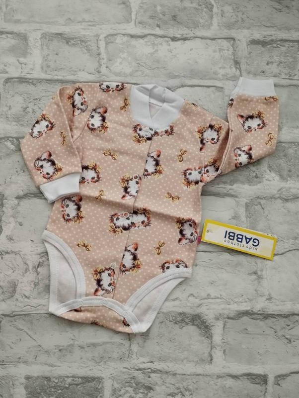 Дуже милі бодіки з довгим рукавом для дівчаток, ніжні кольори та милі кошенята. Тканина: 100% бавовна Виборни: Україна. Бежевий 68 розмір (6-9 місяців)