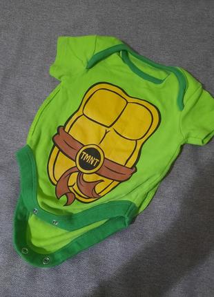 Боди Черепашки ниндзя, сзади есть плащик на липучках. Состояние отличное, размер 0-3 мес