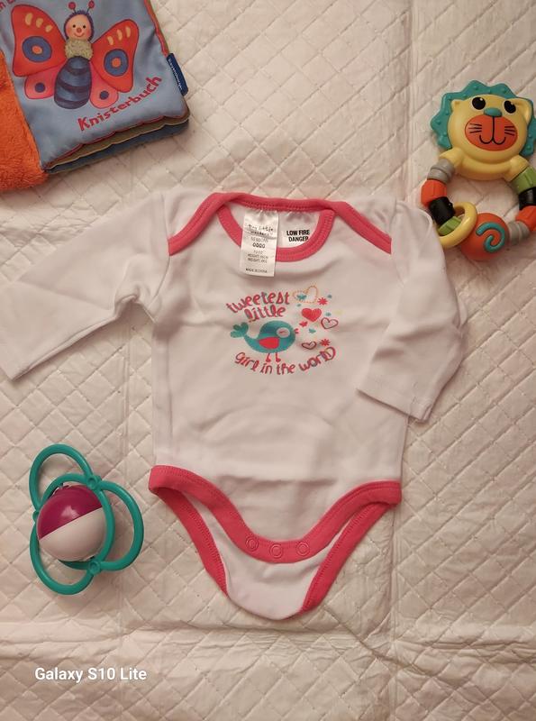 Боді на дівчинку, 0- 3 міс. Стан новий. Йшли комплектом без бірок. 100 % бавовна, довгий рукав.