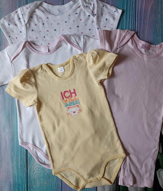 Ціна за всі 4 разом. Стан хороший, на білому є світлі маленькі плями. Розмір вказано 24-36 міс.
