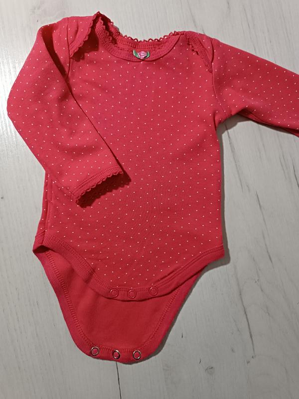 Бодік рожевого кольору в горошок 50-56 см 100% бавовна