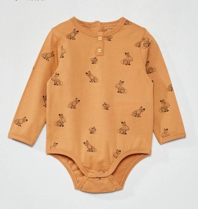 Детское боди фирмы «Kiabi» Цвет кэмел, принт зайчик Возраст:новарожденный или 1 месяц Не утеплений Новый с биркой, качественный материал, не линяет при стирке