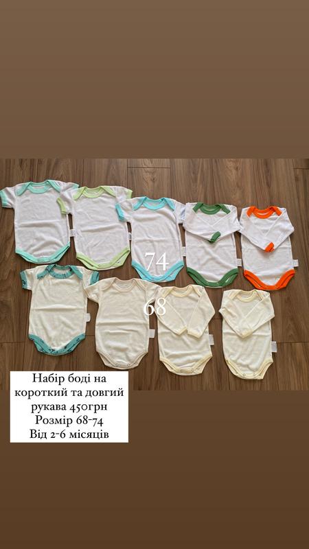 Набір боді на короткий та довгий рукава Ціна 450 Розмір 68-74 Стан Новий