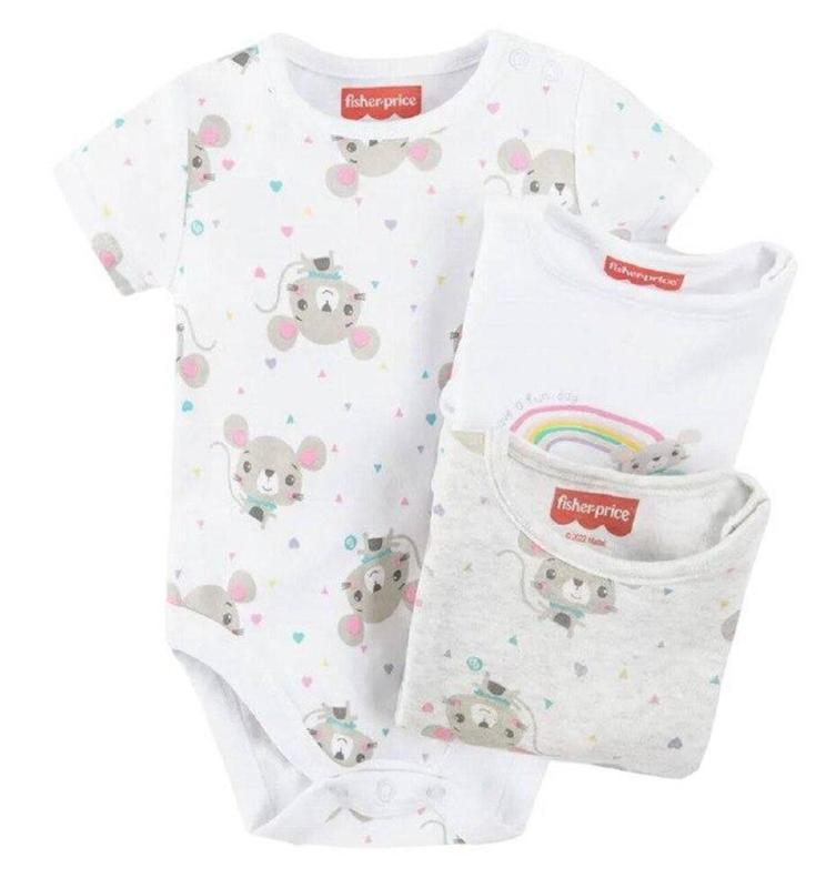 Fisher price набір ,комплект боді з коротким рукавом 3 шт для малюків 74р
