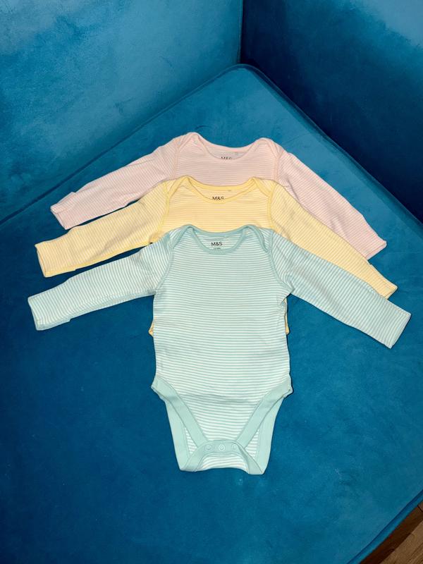 Дитячі боді з довгим рукавчиком від M&S🌈 (стан ідеальний) Бавовна 100% Розмір 3-6 місяців Ціна за набір - 280 грн