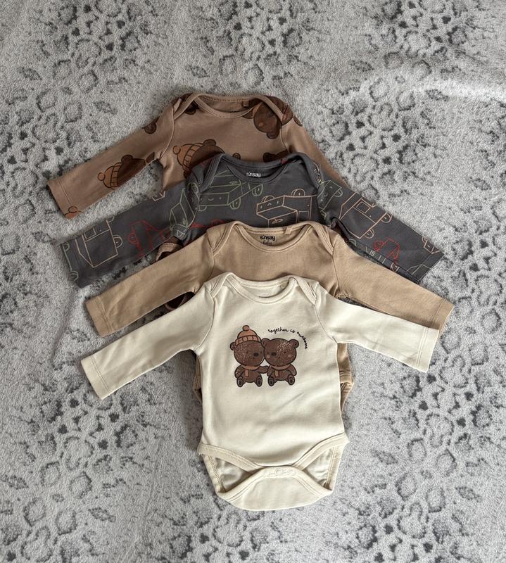 Бодіки з sinsey, 56р,нові. Малюк народився більшим,не встигли надіти. Продаю 4шт разом. Довжина 27-28см