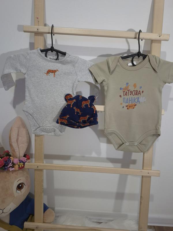 комплект: боді з шапочкою у тиграх 62 см (новий) боді з написом 62 см