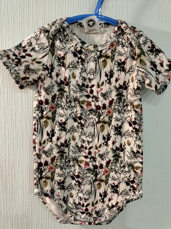 Новенький оригінальний бодік на дівчинку 6-9міс. Довжина по спинці до памперса 49см, ширина під пахвами 21см.
