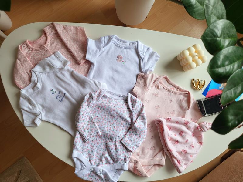чудовий комплект одягу для новонародженої дівчинки, створений з любов’ю та турботою про комфорт малечі. Ідеально підійде як для перших днів вдома, так і на виписку. Ціна за шт У наборі: Бодіки — м’які, зручні, приємні до тіла Кофтиночка — тепла та ніжна Шапульки — гарно сідають Все виконано зі складовою вовни