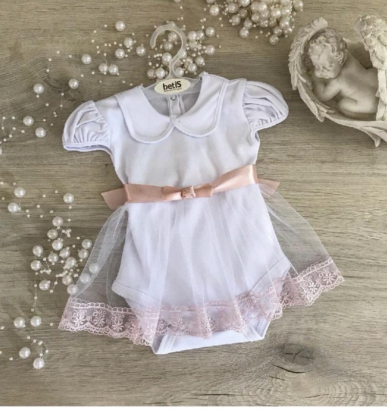 Чарівна модель з короткими рукавами. Виглядає по-королівськи вишукано і стримано. Боді зшите з натурального полотна інтерлок, 100% бавовна. Приємний до тіла і дуже зручний предмет одягу. Дана модель з прозорою фатиновою спідницею. Атласна стрічка в відтінку до мережива на спідниці красиво прикрашає талію. Виріб зручно застібається кнопками ззаду. Ідеальний варіант для святкових подій і фотосесій. Розмір 62-80
