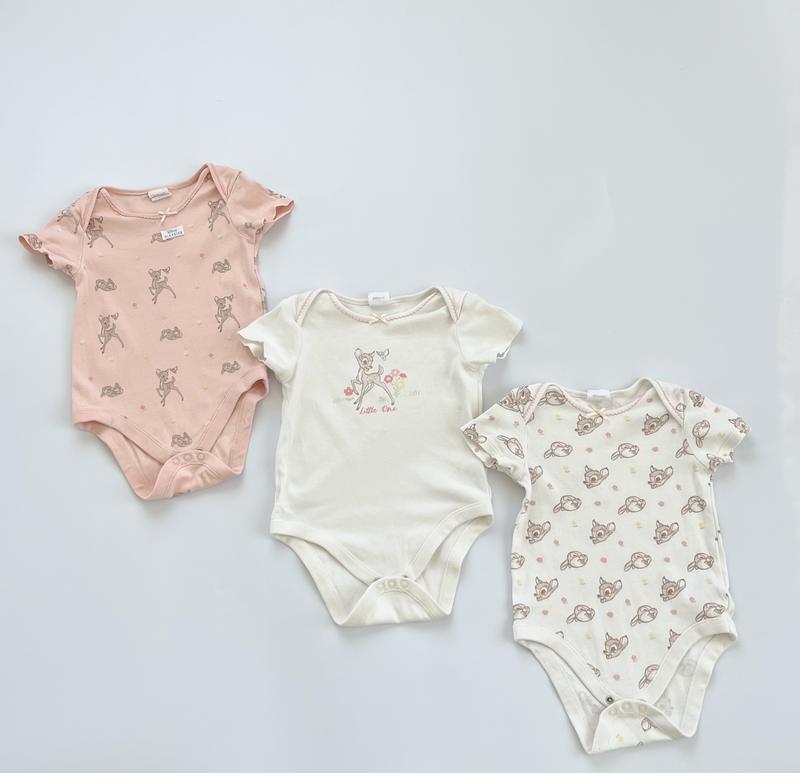 Набір з 3 боді від Tesco Disney з улюбленими персонажами. Особливості: • Матеріал: 100% бавовна • Розмір: 98(але маломірить, підходить на 1.5-2 роки) • Стан: 9/10 - відмінний • Бренд: Tesco Disney Дизайн: • Рожеве боді з принтом Бембі та лісових звірят • Біле боді з написом "Little One" та квітковим декором • Світле боді з дрібним принтом оленят Зручні застібки-кнопки знизу для легкої зміни підгузка. М'яка бавовняна тканина забезпечує комфорт протягом дня. Ідеально для повсякденного носіння малюків.