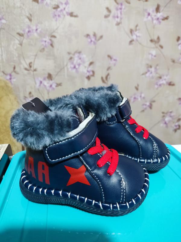 Зимові черевички для хлопчик, нові. Розмір 18 (11,5 см) Матеріал підкладки - штучне хутро. Матеріал верху - штучна шкіра.