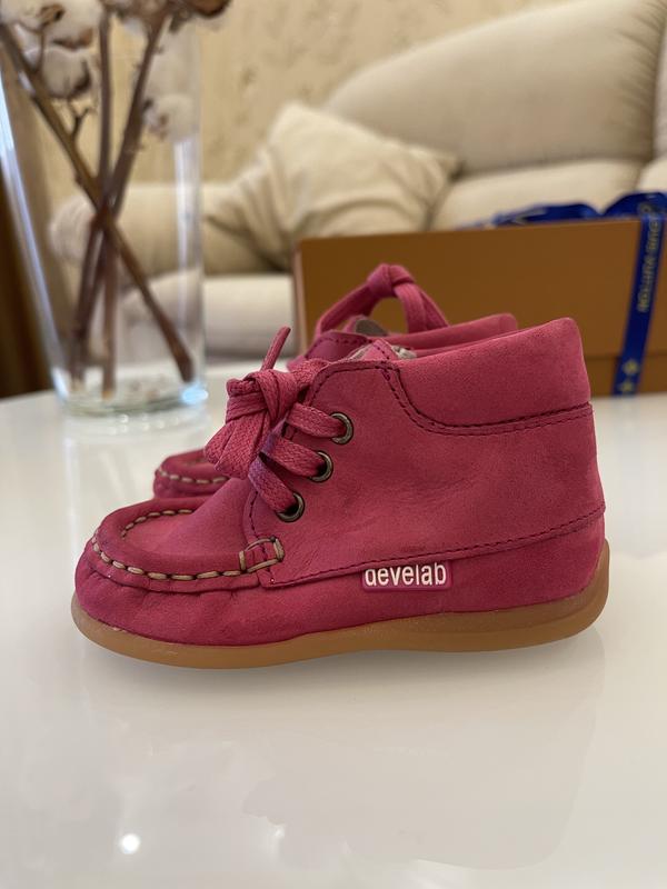 Голландська компанія Develab випускає модне, комфортне, оригінального стилю та якісне дитяче взуття виключно з натуральної сировини за сучасними технологіями! Суперські, стильні, якісні, зручні та комфортні черевики у спортивному стилі! Виконані повністю з якісної натуральної шкіри та замші: верх, усередині та устілка - ніжка не буде паритися! Прошиті Побалуйте свою дитину реально якісним брендовим взуттям за доступною ціною Стан нових Розмір 20, устілки 12,5 см