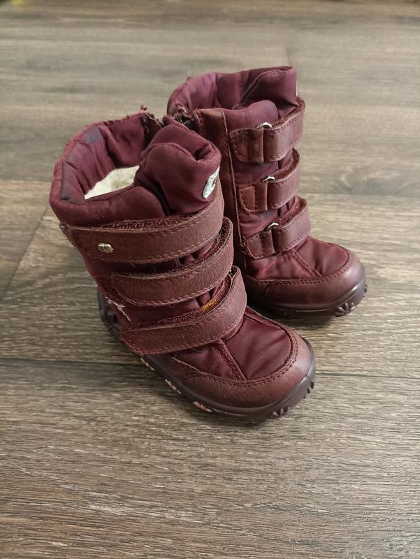 Дуже теплі фірмові сапожки, без слідів носки. Всередині натуральне хутро, зовні шкіра і болонья. Регулюються липучками, підійдуть на будь-яку повноту ніжки. Устілка 13.5см