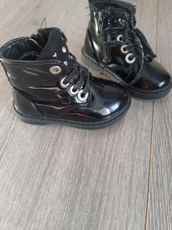 Черевики чорні лакові на блискавці та шнурках, усередині текстиль. Нюанс на правому носку подряпина.
