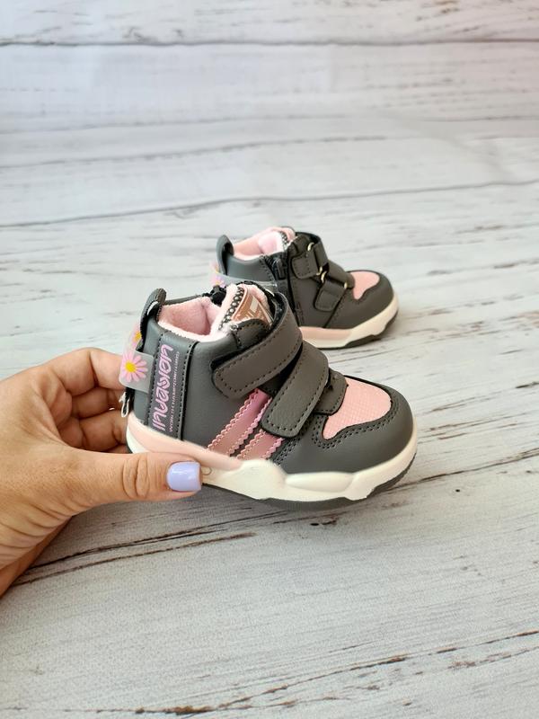 Черевики для дівчаток Tom.m Сезон: осінь-весна Колір: сірий Матеріал внутрішній: флісова устілка з супінатором + підкладка фліс Матеріал зовнішній: шкіра та м'яка екошкіра Легкі, стильні та неймовірно яскраві черевики. Ідеальні для перших кроків дитини. Підійдуть на високий підйом і стандартну ніжку. Черевики чудово фіксуються на ніжці завдяки регулюванню повноти липучками + блискавка Кожна пара черевиків упакована у коробку Розмір по устілці повністю: 18р. по устілці 11,5 см 18р. по устілці 11,5 см