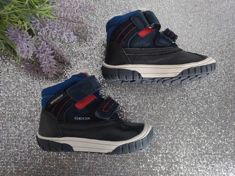 Практично нові, в ідеальному стані. Дуже сильно теплі, ніжки не мерзли зовсім. З натуральної шкіри та вовни, в Intertop більше 3000 гр, коштують своїх грошей, 100%. Непромокаємі. Міцні зимові черевики для хлопчиків від Geox Особливості: Верх із комбінації водонепроникної шкіри та текстилю. Застібка-липучка для надійної фіксації стопи. Оздоблення з натуральної вовни. Усередині м'яка підкладка та знімна устілка з текстилю. Протектор із вбудованою системою гнучкості Flexy System. Гумова підошва для найкращого зчеплення з поверхнею.