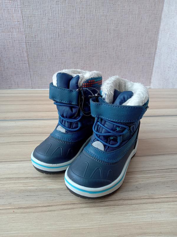 Дитячі термо чобітки, утеплені непромокаючі на липучці для хлопчика синього кольору Lupilu, Німеччина. Утеплювач – термопаралоновий. Легко взуються, зручні, яскравий синій з принтом, фіксуються на липучку, язичок цілісний на всю висоту чобітка, підйом регулюється. Повністю волого та вітронепроникні (низ і верх). Легкі за вагою. Ніжка не потіє, не промокає і не мерзне. Устілка термо, профольгована, виймається. Розмір: 20 (устілка 13.5 см) Мають маленький нюанс Ціна: 400 грн