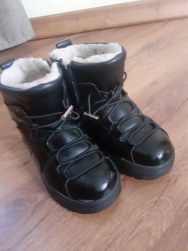обувь зимняя для девочки 4-5 года размер 28,цена минимальная 300 грн, имеет дефекты на 2 фото указала