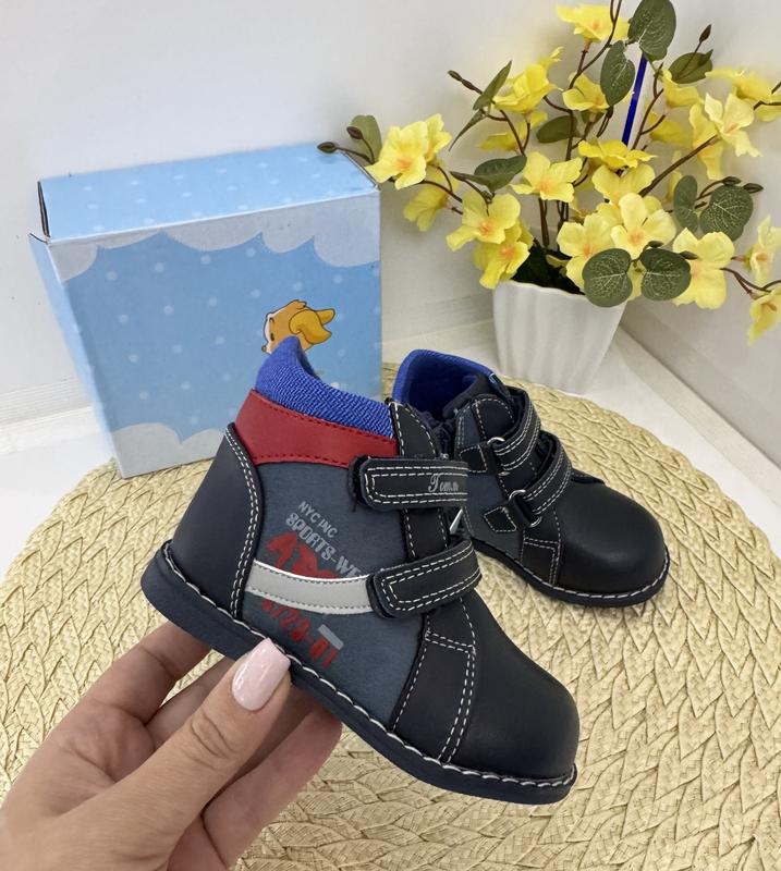 Демісезонні черевики Том.м для малюків, з каблуком Томаса Матеріал - екошкіра, утеплені флісом, устілка з супінатором Черевики легенькі, для фіксації присутні дві липучки та боковий замочок. 18 розмір -11,5 см 21 розмір - 13,5 см 22 розмір - 14 см