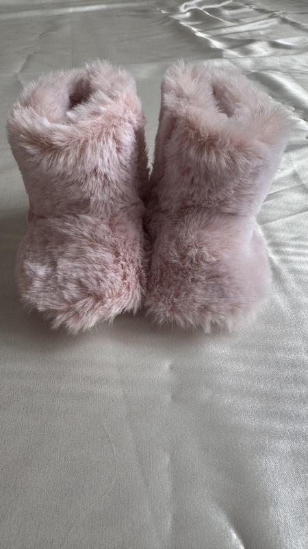 Класні угі для маленької принцеси повністю з еко-хутра має ліпучка для зручного взуваня наповнювач еко-хутро , має бантик Розмір 0/3 місяців