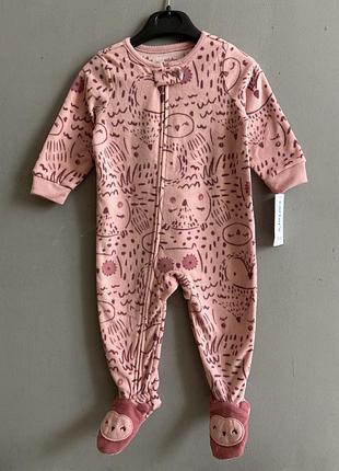 Флісові піжама з закритими ніжками , має антислизьку підошву на стопах. Застібка- блискавка. Розмір: 9-12 міс, 72-78 см зріст; 18-24 міс, 83-86см зріст.