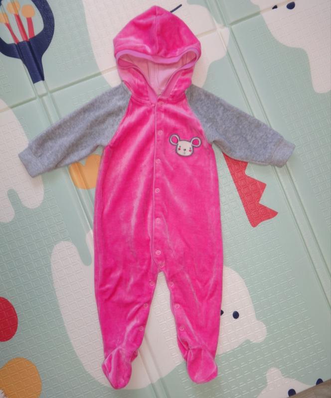 Красивий комбінезон с капюшоном і закритими ніжками для дівчинки, насичено-рожевий колір який чудово доповнює сірий на рукавах. Це гарний варіант для малятка від 6 до 9 місяців, зріст 68-74см. Усі дітки різні, за потреби зніму мірки. Модель прикрашена вишивкою-аплікацією у вигляді милої мишки, застібається на кнопки-колечки по всій довжині і між ніжками, має манжети по низу рукава. Тканина велюр, з якої зроблен комбінезон, приємна на дотик, має чудовий зовнішній вигляд, гарну теплоізоляцію, завдяки ворсу, створюється повітряний прошарок, який зберігає тепло. Стан на 5- (виділяю на фото дефект на кнопці, щильно майже непомітно зашила, далі не йде). Носили мало, швидко набрали вагу. Відправлю Укрпоштою, Новою поштою, Meest за Ваш кошт. Пишіть)