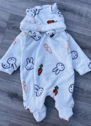 Человечек «Зайчики» молочный, унисекс 0-3-6-9 месяцев. Махра