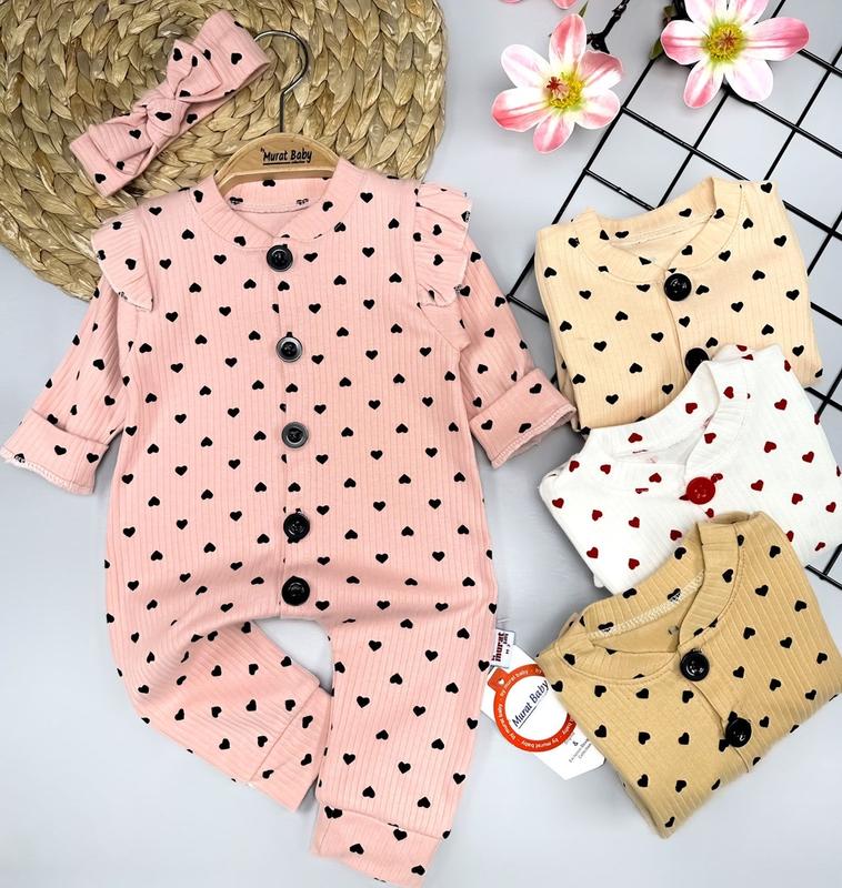 Стильний однотонний ромпер в рубчик в принт сердечка для маленьких принцес. Забезпечує комфорт та легкість рухів. Тканина рубчик, 100% котон. Має застібки- гудзики по всій довжині , для зручності одягання-переодягання. Стильний та приємний до тіла. Легкий у догляді. Виробник Туреччина.