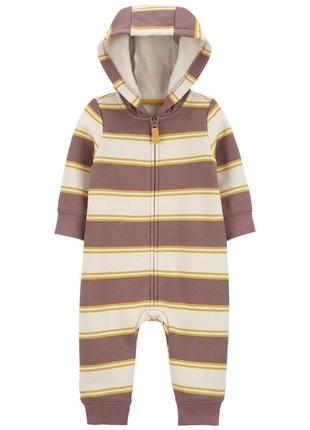 Смугастий чоловічок на флісі, з капюшоном . Застібається на блискавку. Розміри: 3 міс, 6 міс, 9 міс, 12 міс, 18 міс, 24 міс.