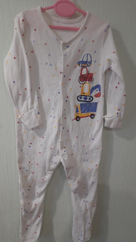 В ідеальному стані чоловічок на дитину від 6-9міс. Довжина від плеча до п'яточки 56см, довжина по спинці до памперса 35см, довжина рукава з плечем 30см, ширина під пахвами 26см.