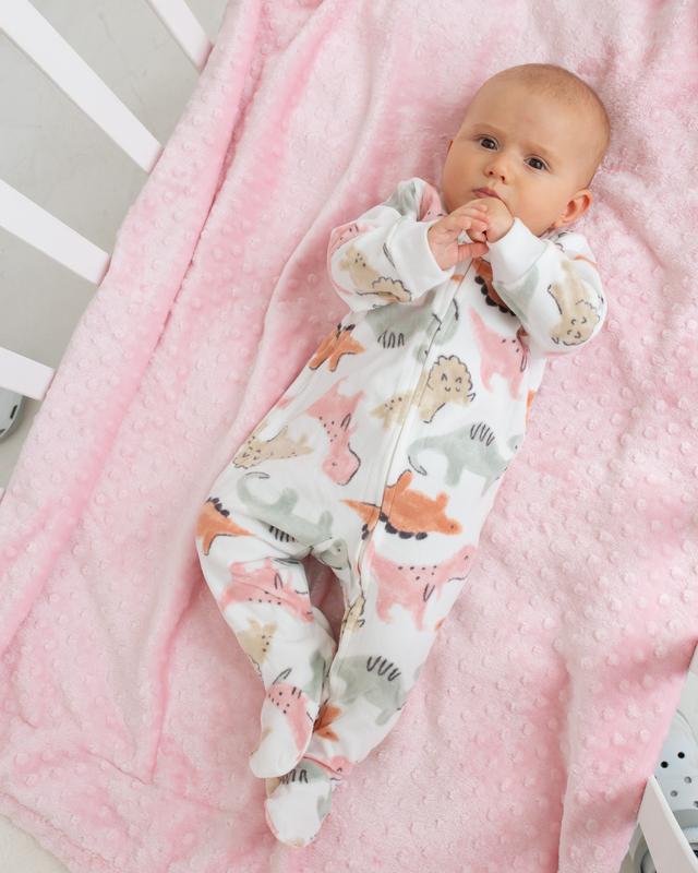 Мікрофлісовий чоловічок білого кольору у дінозавриках для дівчаток від Картерс. Теплий, м'який, ніжний чоловічок для дому та як піддьова, на блискавці, блискавка з двох сторін для зручності переодягання.