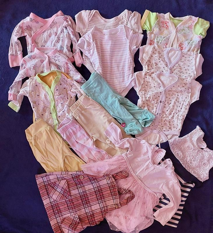 Продається набір речей на дівчинку від 0 до 3 місяців, кількість - сукні 3шт - штани 4 шт - боді 7 шт - кофтинка - 1 шт 💳 Ціна вказана за весь набір. 👌Стан- дуже хороший 📸 Додаткові фото надішлю в особисті