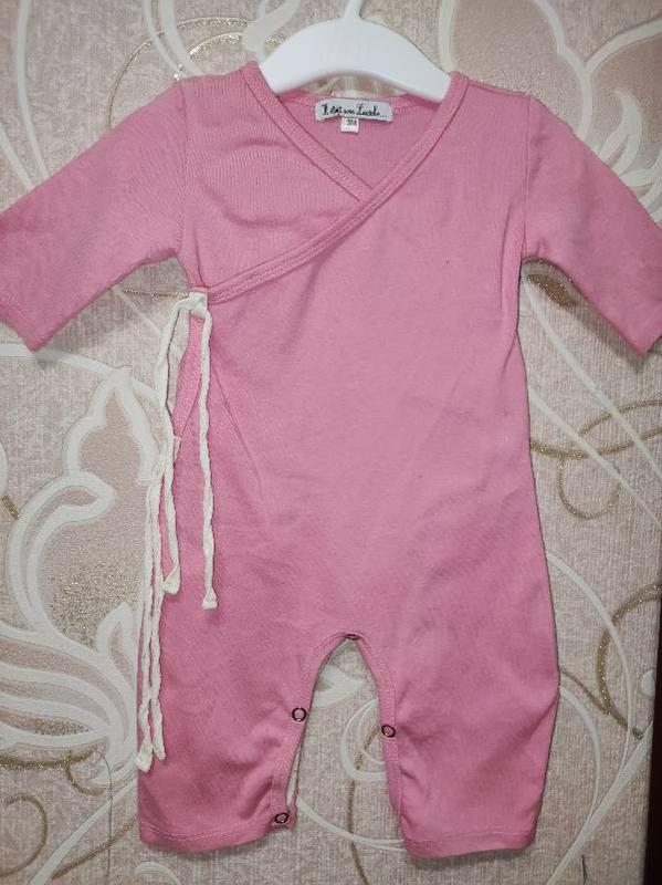 Мінімальне замовлення у продавця на 100 грн. Оригінальний, рожевий комбінезон на запах, рукав 3/4, застібається на кнопки між ніжками у відмінному стані на дитину до трьох місяців. Декоративні канатики. Довжина всього виробу по спинці від плеча 48 см, довжина по спинці від плеча 33 см, обхват грудей 20 см, довжина рукава 16 см. Тканина бавовна, тягнеться. Країна виробник: Франція, фірма "Il etait une Luciole". Модель 71