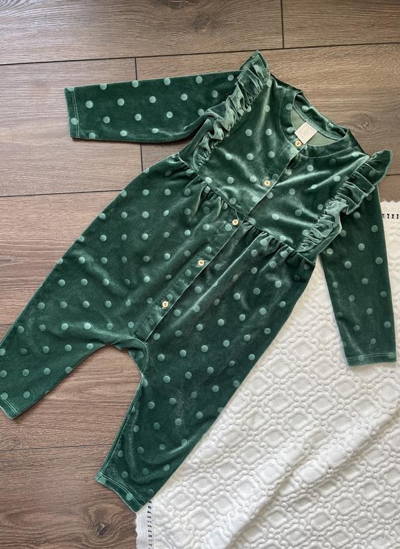 Зелений смарагдовий велюровий ромпер для дівчинки h&m 9-12 міс 80 см святковий з рюшами в...