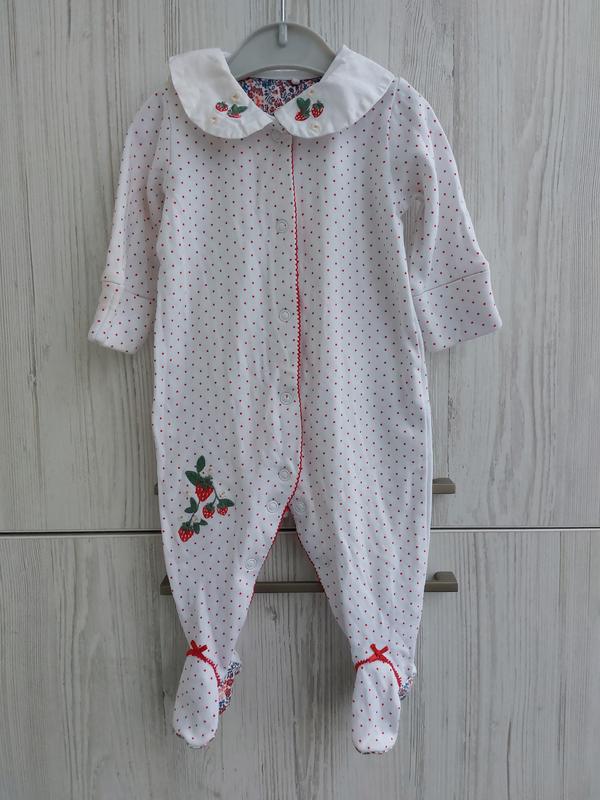 Брендовий бавовняний чоловічок з комірцем з вишивкою полуничок для дівчинки 1-3м