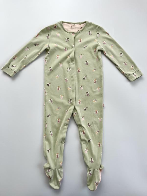 Чарівний чоловічок від британського бренду Next з принтом маленьких фей на ніжно-зеленому тлі. Особливості: • Матеріал: м'яка бавовна • Колір:зелений з рожевими акцентами • Розмір: 1.5-2 роки • Застібка на кнопки по всій довжині • Закриті ніжки для комфорту • Довгі рукави з манжетами Стан: відмінний 9/10 - практично як новий, без видимих дефектів. Ідеально підходить для сну, відпочинку вдома або як піжама. Зручний крій забезпечує свободу рухів, а якісна бавовна дбайливо доглядає за ніжною шкірою малечі.