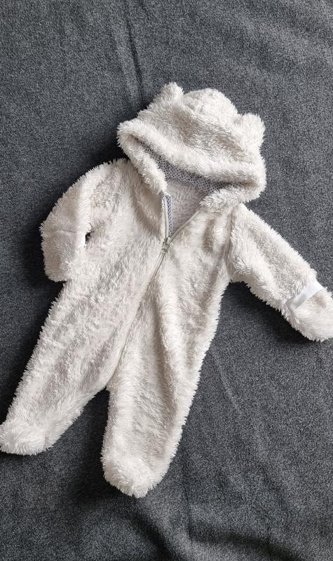 Теплий махровий ромпер білого кольору. Розмір 62, в ідеальному стані. Ідеально на квітень-травень як верхній одяг. В подарунок до нього комбінезон оранжевого кольору, також 62 розміру.