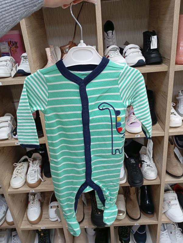 чоловічок (сліп) для хлопчиків від бренду Carter's, виконаний у зелену смужку з аплікацією динозавра. 3 місяці